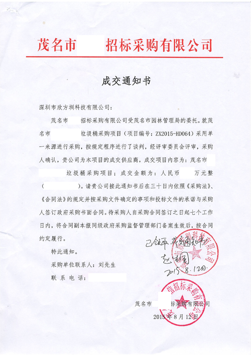 茂名市招標(biāo)采購(gòu)有限公司成交通知書(shū):