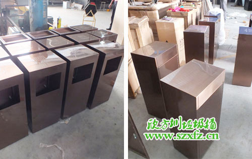 作為一家酒店,采購(gòu)不銹鋼垃圾桶要求極高。垃圾桶的選擇不容馬虎,兩者搭配得融入酒店的文化氣息。我們欣方圳公司業(yè)務(wù)部人員,根據(jù)酒店的特色給他推薦了一款C60方形不銹鋼果皮箱。洽談中對(duì)方對(duì)我們此款垃圾桶很是滿意,只不過(guò)顏色需要改善。我們?cè)O(shè)計(jì)師在對(duì)方的提議中,為他把顏色改為了土豪金色,高端大氣,上層次。本款采購(gòu)的不銹鋼果皮箱規(guī)格為:350*350*680mm,方形設(shè)計(jì),采用304#優(yōu)質(zhì)砂光不銹鋼材料模壓成型,金屬亮澤,高雅美觀跟酒店搭配在一起,可謂是天作地和一對(duì)。