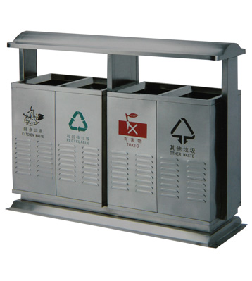 深圳新標(biāo)準(zhǔn)城中村街道社區(qū)不銹鋼五分類垃圾桶由有害垃圾、玻璃、金塑紙(為金屬、塑料、紙張的簡稱)、廚余垃圾、其他垃圾這5分類不銹鋼垃圾桶組合而成。其中金塑紙、其他垃圾日常產(chǎn)生量較大,所以分類收集容器也
