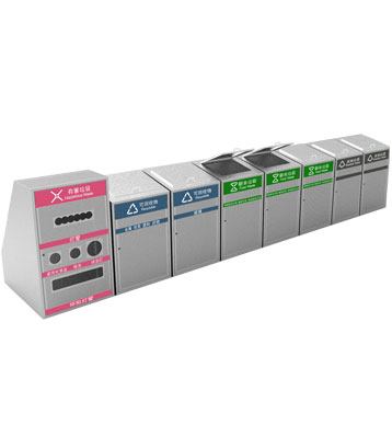 深圳新標(biāo)準(zhǔn)城中村街道社區(qū)不銹鋼五分類垃圾桶由有害垃圾、玻璃、金塑紙(為金屬、塑料、紙張的簡(jiǎn)稱)、廚余垃圾、其他垃圾這5分類不銹鋼垃圾桶組合而成。其中金塑紙、其他垃圾日常產(chǎn)生量較大,所以分類收集容器也