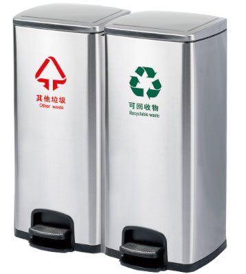 深圳新標準城中村街道社區(qū)不銹鋼五分類垃圾桶由有害垃圾、玻璃、金塑紙(為金屬、塑料、紙張的簡稱)、廚余垃圾、其他垃圾這5分類不銹鋼垃圾桶組合而成。其中金塑紙、其他垃圾日常產(chǎn)生量較大,所以分類收集容器也