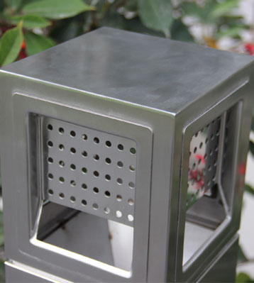 不銹鋼歐式煙灰柱方形設(shè)計,大投口加面板鉚釘,面板有孔位便于未燃燒盡煙的空氣流通,預(yù)留小的煙蒂投口確保精準(zhǔn)投放。