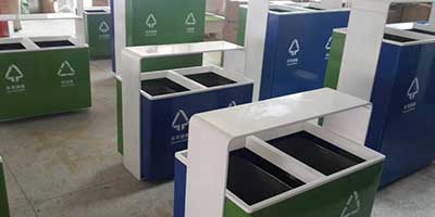 欣方圳鋼制戶外分類垃圾桶均選用優(yōu)質(zhì)的冷軋鋼板經(jīng)噴砂處理去油去銹后,鋼板表面抗紫外線丙稀酸油漆多層噴涂,。
