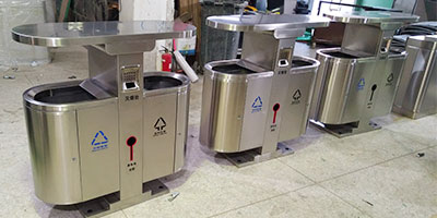 欣方圳小區(qū)不銹鋼分類垃圾桶工廠生產圖