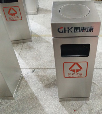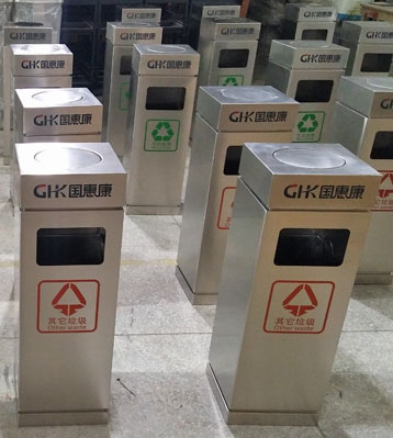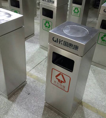 采用厚度1.0MM優(yōu)質(zhì)201不銹鋼板材制作,由專業(yè)師傅焊接焊點平滑美觀,表面打磨拋光防傷手,邊角圓弧設(shè)計防撞擊,絲印商場及垃圾分類標(biāo)識。