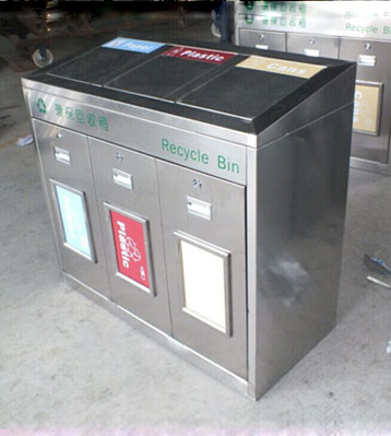 • 產(chǎn)品名稱:不銹鋼三分類垃圾回收箱