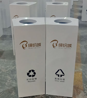 不銹鋼經(jīng)激光切割數(shù)控折彎焊接成型,表面高溫噴塑工藝,塑粉附著力強,可大大延緩銹蝕時間,使2分類組合垃圾箱在商場室內(nèi)環(huán)境使用更耐用。
