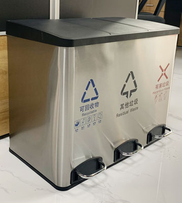 • 產(chǎn)品名稱:30L小區(qū)酒店腳踏不銹鋼室內(nèi)分類垃圾桶