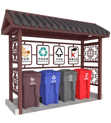 設(shè)有擋雨棚,可配備垃圾箱信息顯示屏、防水照明燈、廣告屏,進(jìn)行地面硬化。對(duì)社區(qū)玻金塑紙可回收物,其他垃圾,廚余垃圾,有害垃圾等生活垃圾定時(shí)定點(diǎn)投放收集.