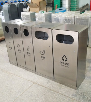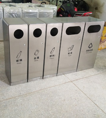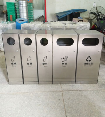 • 產(chǎn)品材質(zhì):戶外五分類垃圾箱根據(jù)客戶需求可采用201#,202#,304#優(yōu)質(zhì)不銹鋼材質(zhì)模壓或焊接成型,面板可分色烤漆美觀耐用,不易破損;耐火安全,適合各種惡劣氣候條件;金屬亮澤,高雅美觀,廣泛適用于各種戶外場所;內(nèi)外表面光潔,減少垃圾殘留,易于清潔;配置鍍鋅板內(nèi)桶,便于垃圾清倒。