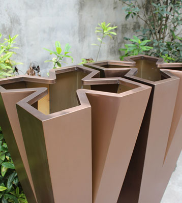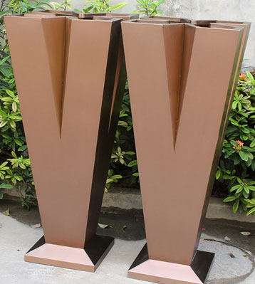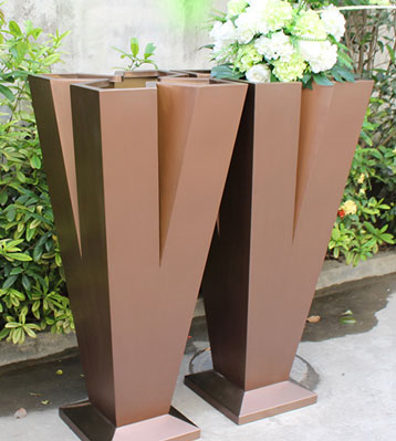 一件起訂,可來圖來樣深化設計加工定制,無中間商廠家花盆批發(fā)價為您省錢,不銹鋼高V字形美陳花器電鍍高端景觀花盆表面工藝豐富品質(zhì)高端無毛刺不傷手,戶外擺放防銹蝕耐用,大型鈑金廠設備先進歡迎來廠參觀!