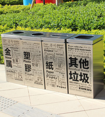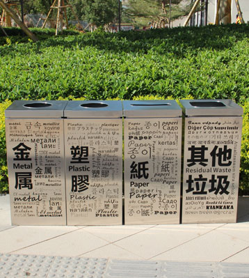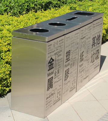 • 產(chǎn)品名稱:多國文字組合式不銹鋼分類垃圾桶