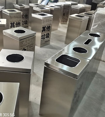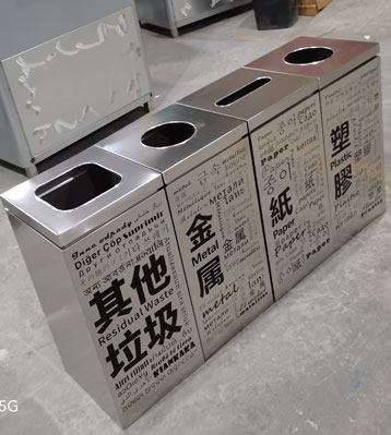 多國文字組合式不銹鋼分類垃圾桶工廠批量生產(chǎn)圖