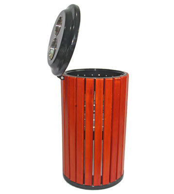 戶外街道鋼木單桶垃圾桶戶外擺放效果圖: