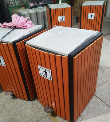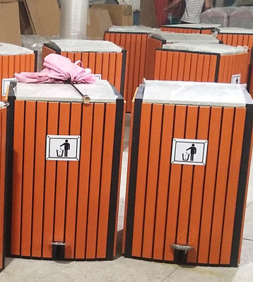 戶外鋼木腳踏式垃圾桶工廠生產(chǎn)圖