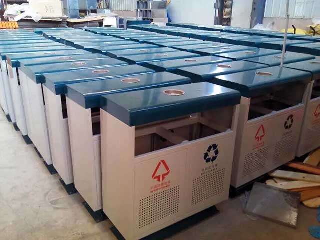 • 產(chǎn)品材質(zhì):欣方圳鋼板分類垃圾桶采用優(yōu)質(zhì)冷軋鋼材料經(jīng)剪鈑下料、折彎、沖壓、焊接、打磨、等工藝:表面經(jīng)過除油、噴砂防銹處理后,再進(jìn)行酸洗磷化處理;表面清理干燥后整體進(jìn)行靜電噴涂或烤漆處理,靜電噴涂是經(jīng)過流水線高溫固化爐固化后再出爐冷卻,加工后的塑粉附著力強(qiáng),不易剝落;