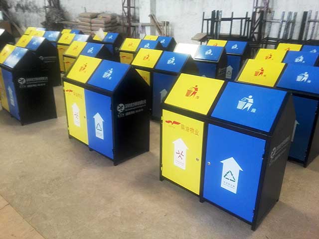 欣方圳戶外鋼板分類垃圾桶!